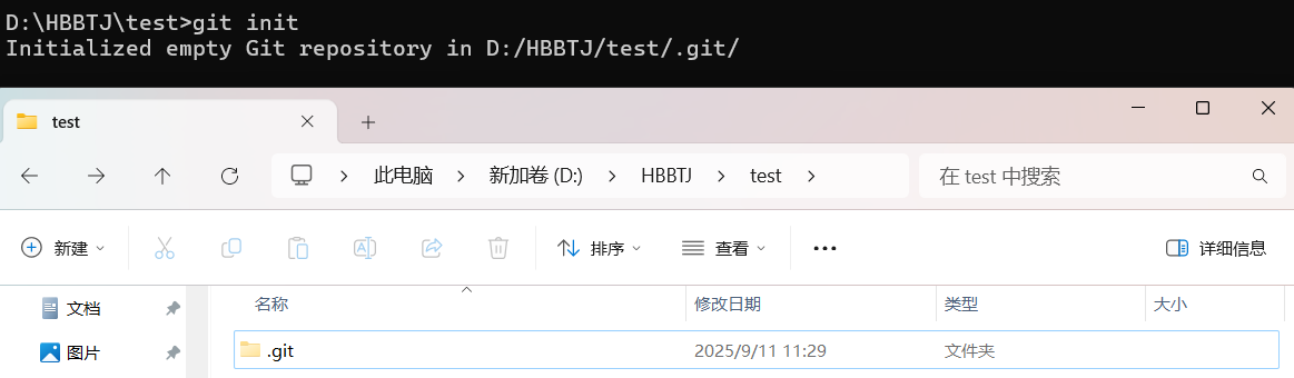 瞬间Git就把仓库建好了,而且告诉你是一个空的仓库(empty Git repository),细心的读者可以发现当前目录下多了一个.git