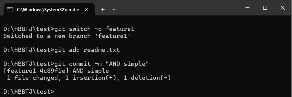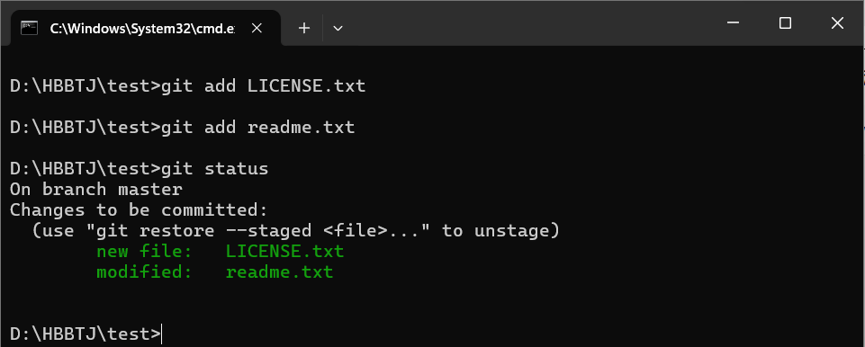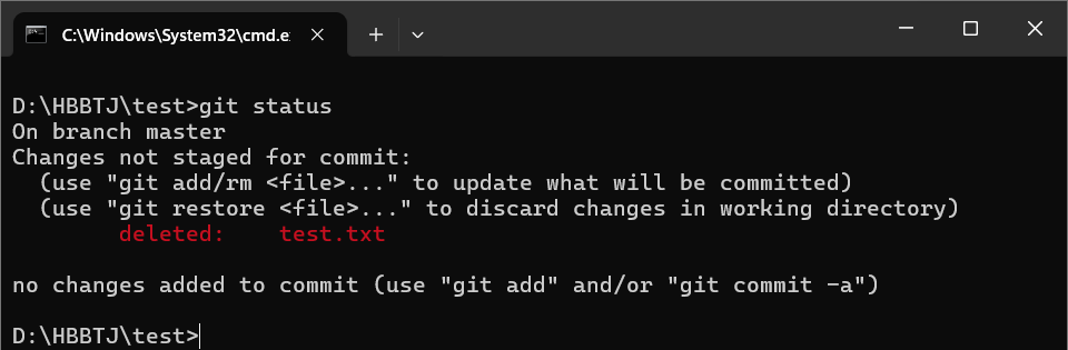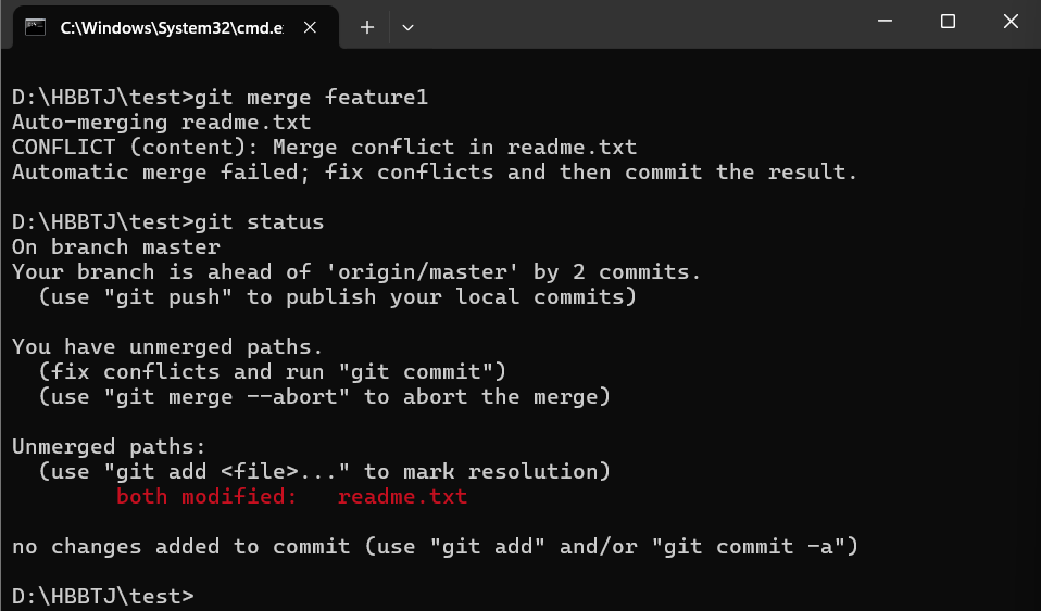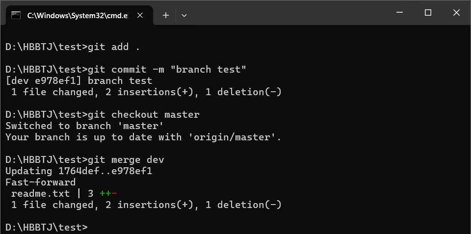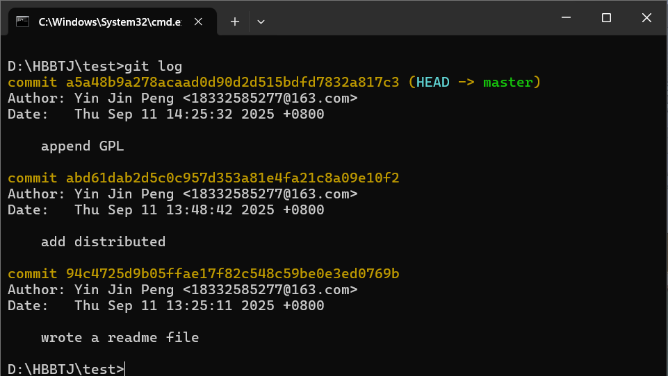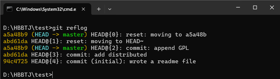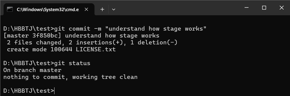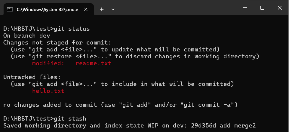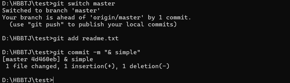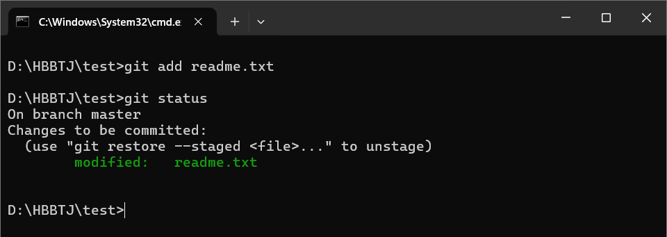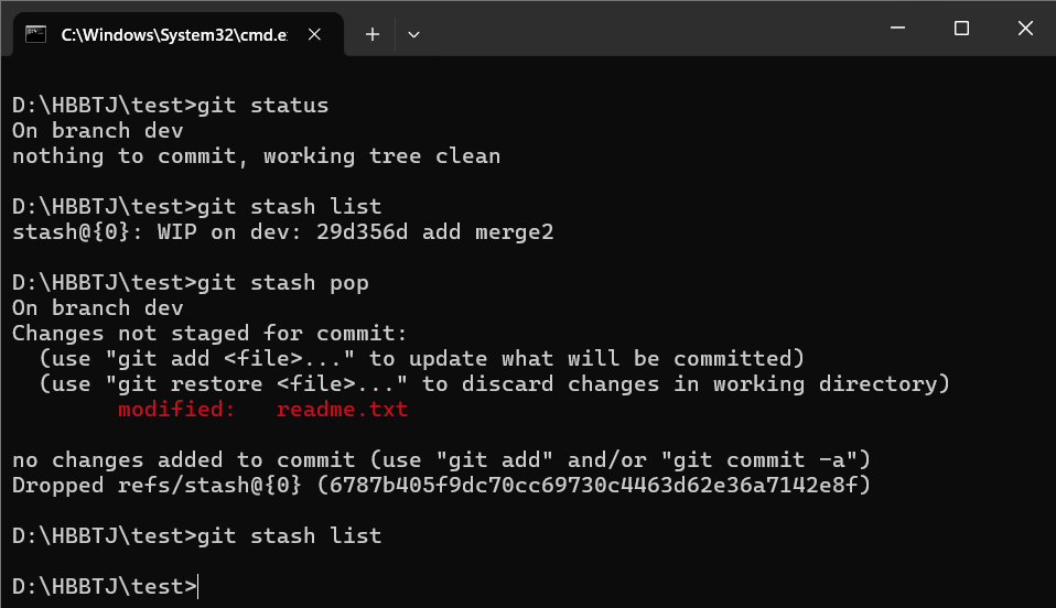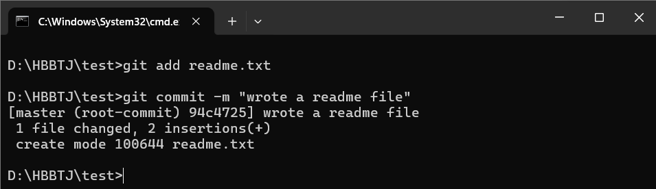 :1个文件被改动(我们新添加的readme.txt文件);2 insertions