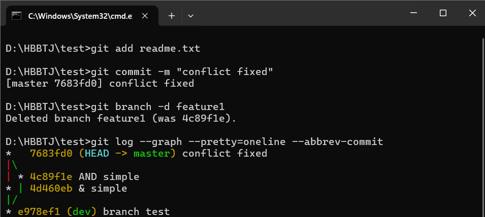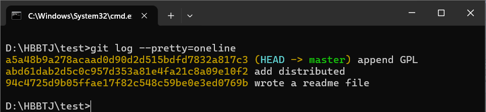 * e0ea545 (HEAD -> master) Merge branch 'master' of github.com:michaelliao/learngit