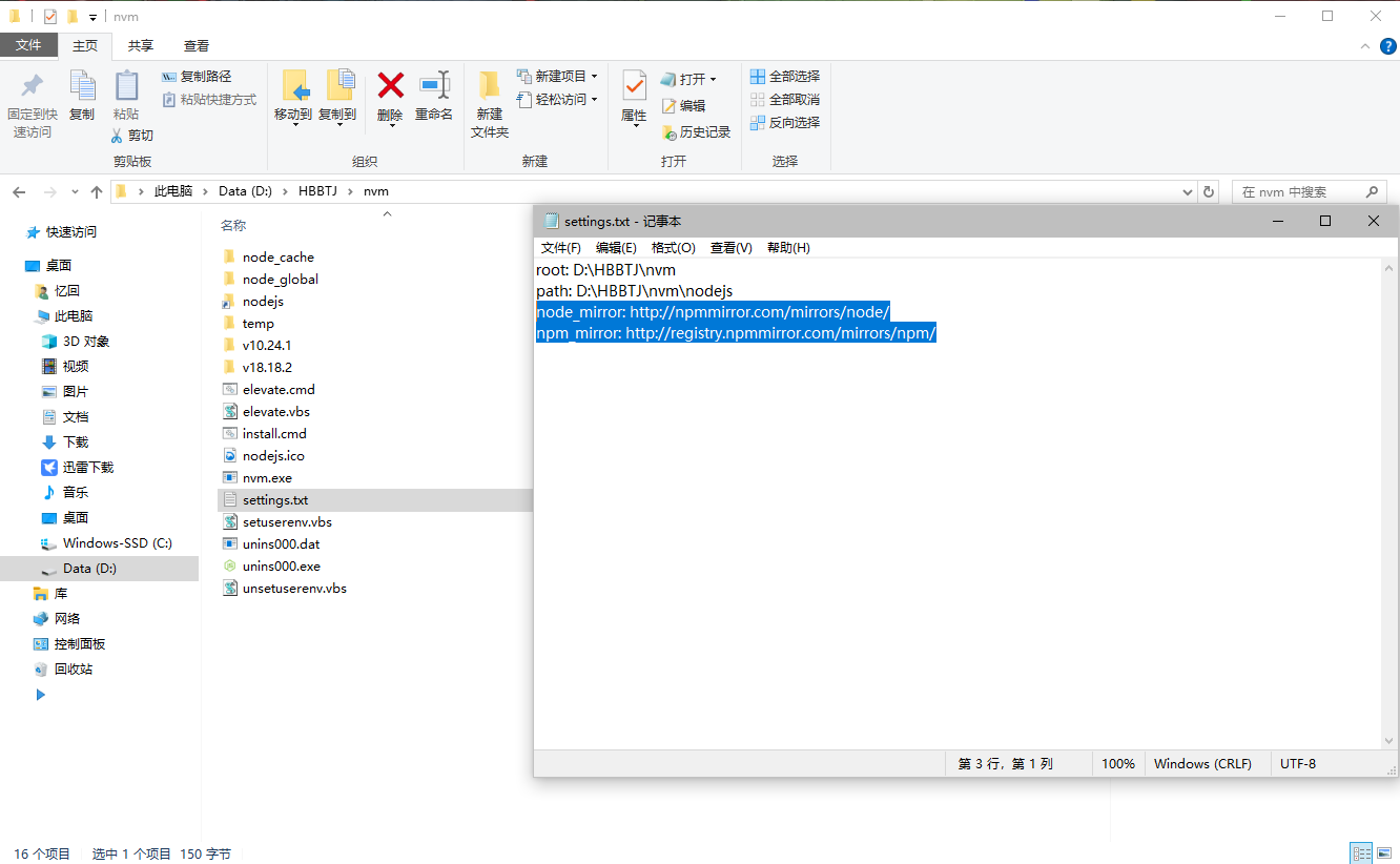 安装完成后,进入 nvm 安装目录,编辑
