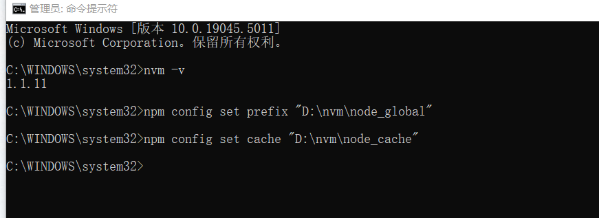 npm config set prefix "D:\nvm\node_global" npm config set cache "D:\nvm\node_cache"