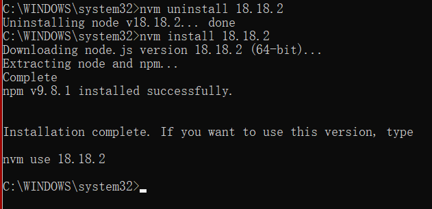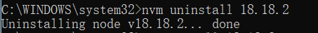 卸载指定版本 | nvm uninstall <version> | nvm uninstall 18.18.2 |